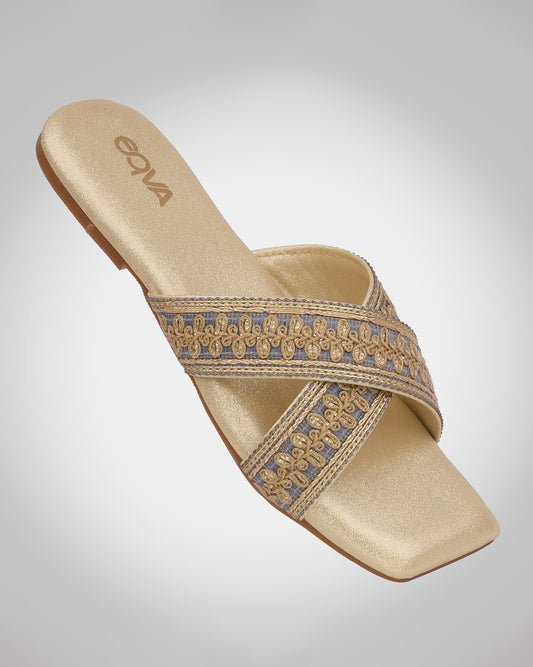 Women Open Toe Embroidery Flats - R5091